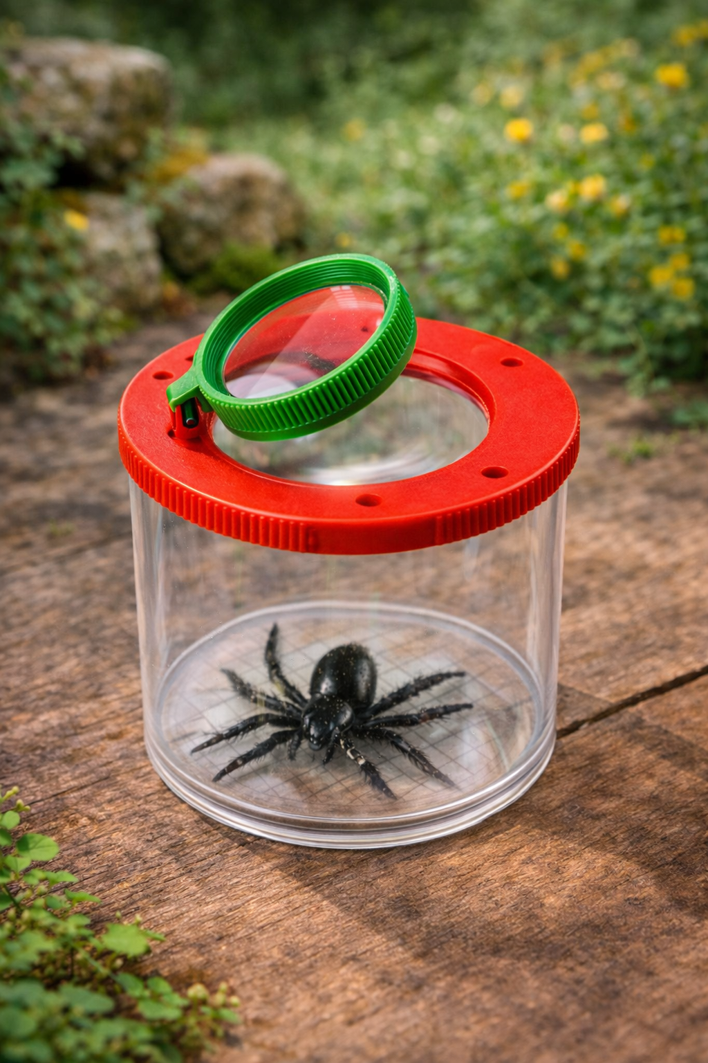 Kirkas ötökkäpurkki suurennuslasilla pienten hyönteisten ja ötököiden tarkkailuun. Helppo käyttää, kevyt ja ötökkäystävällinen – täydellinen luontoretkiin ja lasten tutkimushetkiin.